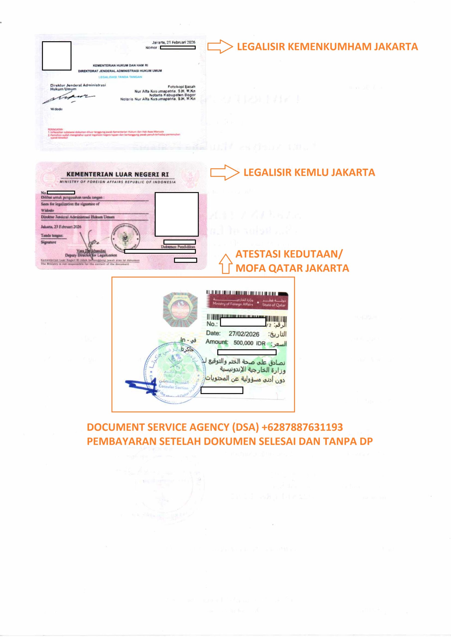 Telp/ Whatsapp : 021 48671259/ +62 878 8763 1193 atau email : documentsserviceagency@gmail.com