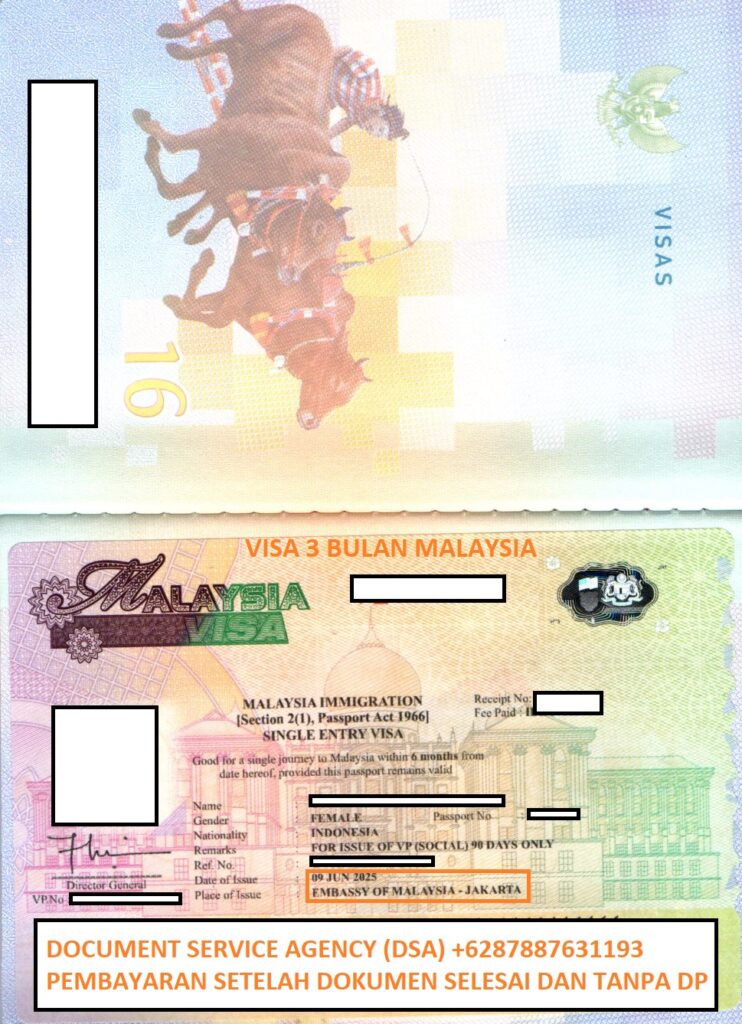 DSA (Document Service Agency) adalah spesialis jasa terjemah, legalisir, atestasi, apostile dokumen untuk keperluan di luar negeri dan pengurusan visa berpengalaman dan terpercaya. Bagi anda yang ingin mngurus visa di Kedutaan Malaysia untuk keperluan liburan, bisnis, bekerja dan lain-lain. Anda tidak perlu datang ke Jakarta karna pengurusan visa anda bisa diwakilkan kepada kami, dengan layanan ” Pembayaran Setelah Dokumen Selesai dan Tanpa DP ” membuat anda lebih nyaman dan aman menggunakan jasa kami.